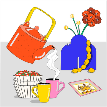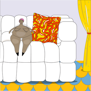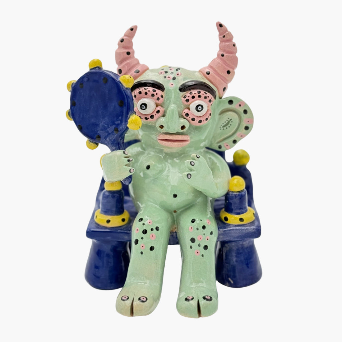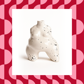 A handcrafted cushion with exaggerated rounded forms, inspired by folk figurines.