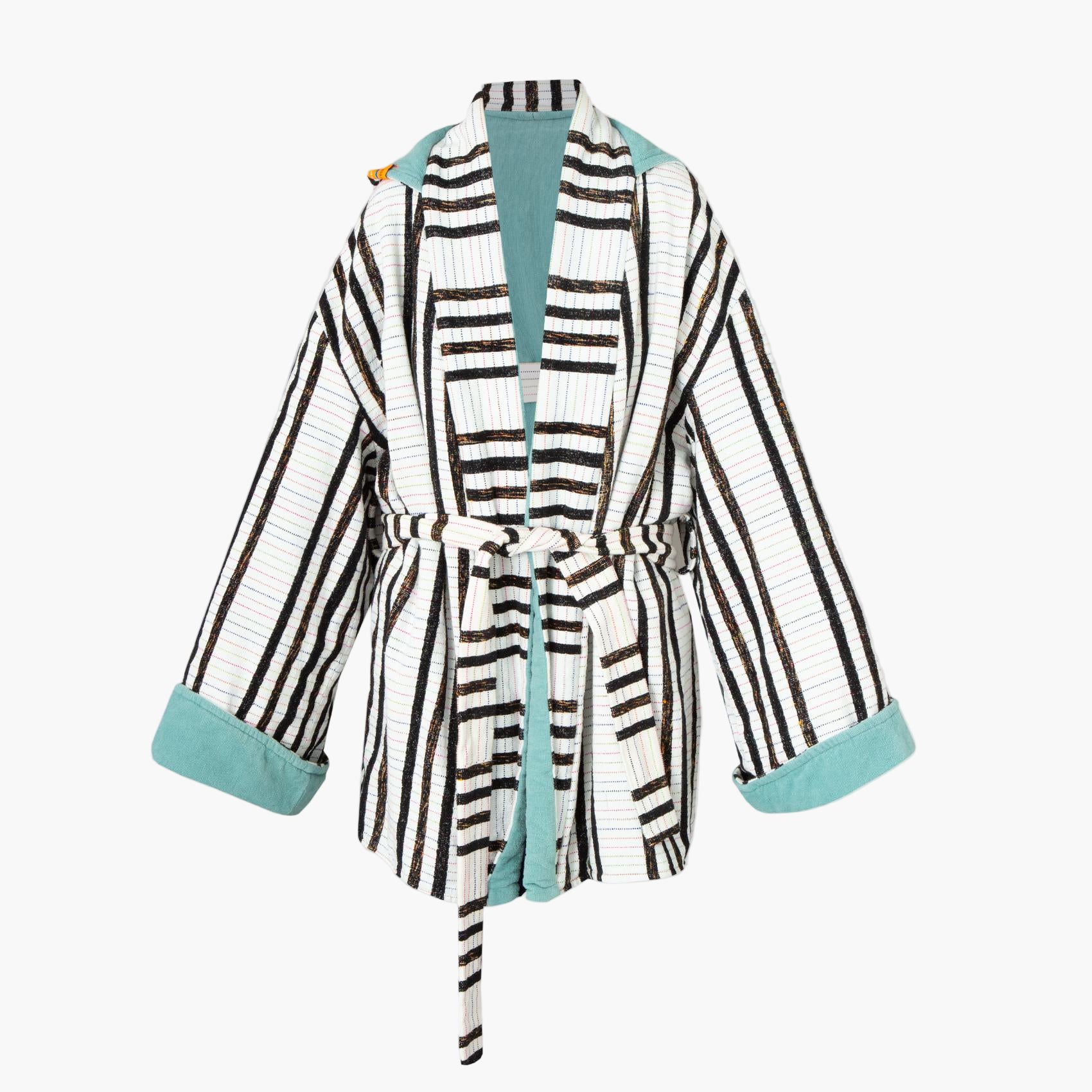 White and blue towel robe