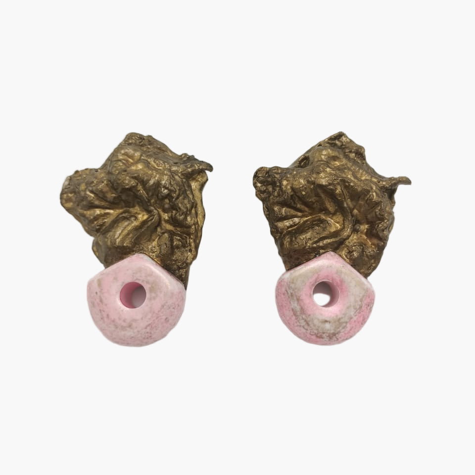 Vintage Harir Earrings with Chunky Nugget Pink Gem