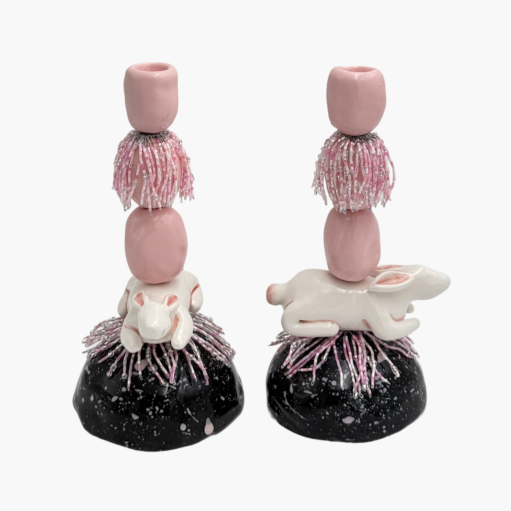 Resting Bunny Candleholder by Kikai Objects brings a playful sculptural touch to interiors. Inspired by the stacking of elements and the animal world, its smooth, modular form serves as both a functional candleholder and a standalone decorative piece.