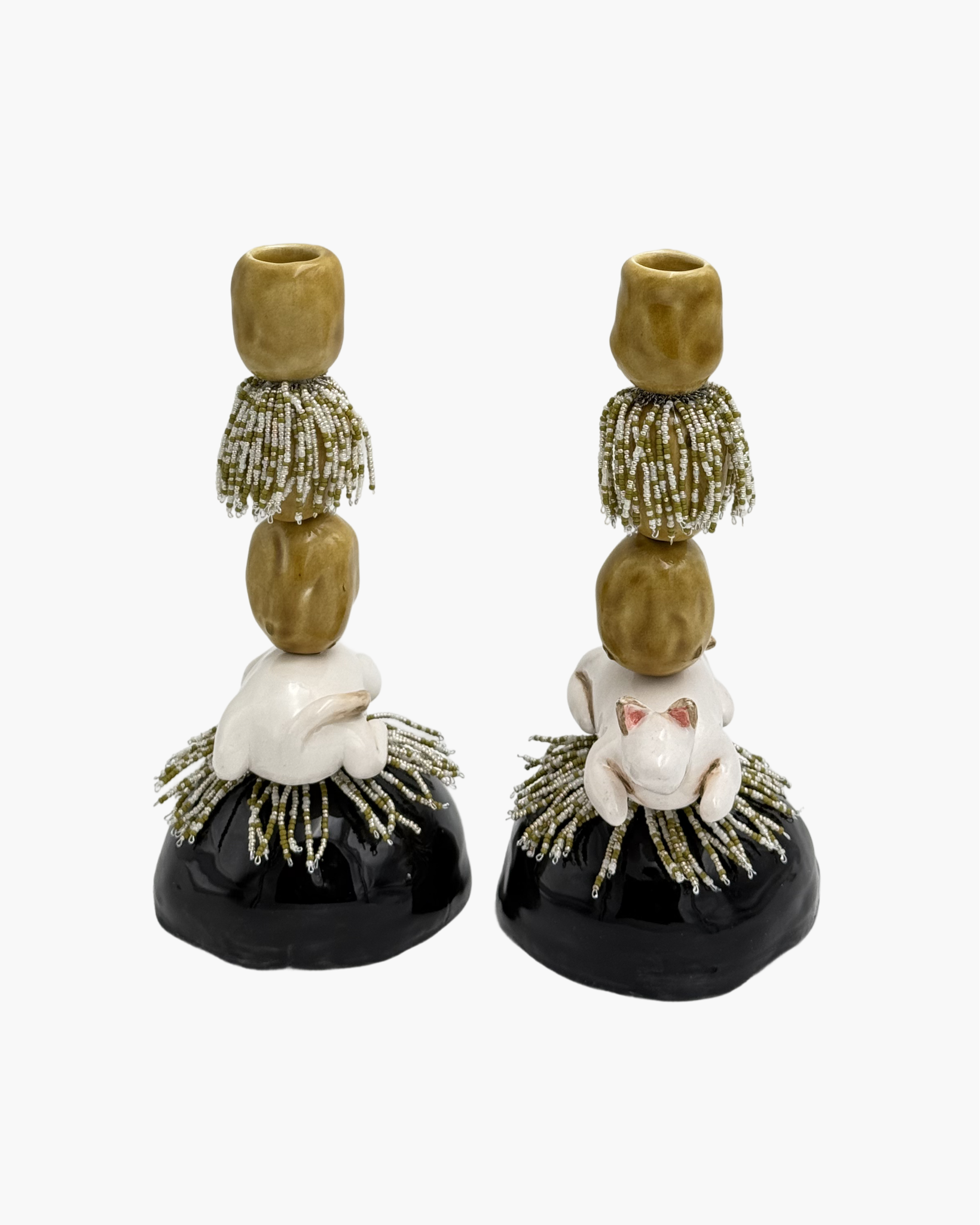 The Resting Cat Candleholder captures the graceful, curled-up form of a cat in a sleek, sculptural design. Created by Kikai Objects, this stackable, modular piece serves as both a functional candleholder and a stylized decor object, bringing a quiet, elegant presence to any setting.