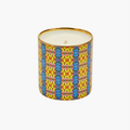 The Rize and Shine pattern is a jubilant celebration of colour and symmetry, featuring striking vertical stripes of sunny yellow and azure blue, interlinked with delicate coral accents. This energetic pattern creates a rhythmic dance of shapes reminiscent of Art Deco architecture and summer sunshine, bringing an instant lift to any room whether lit or unlit.